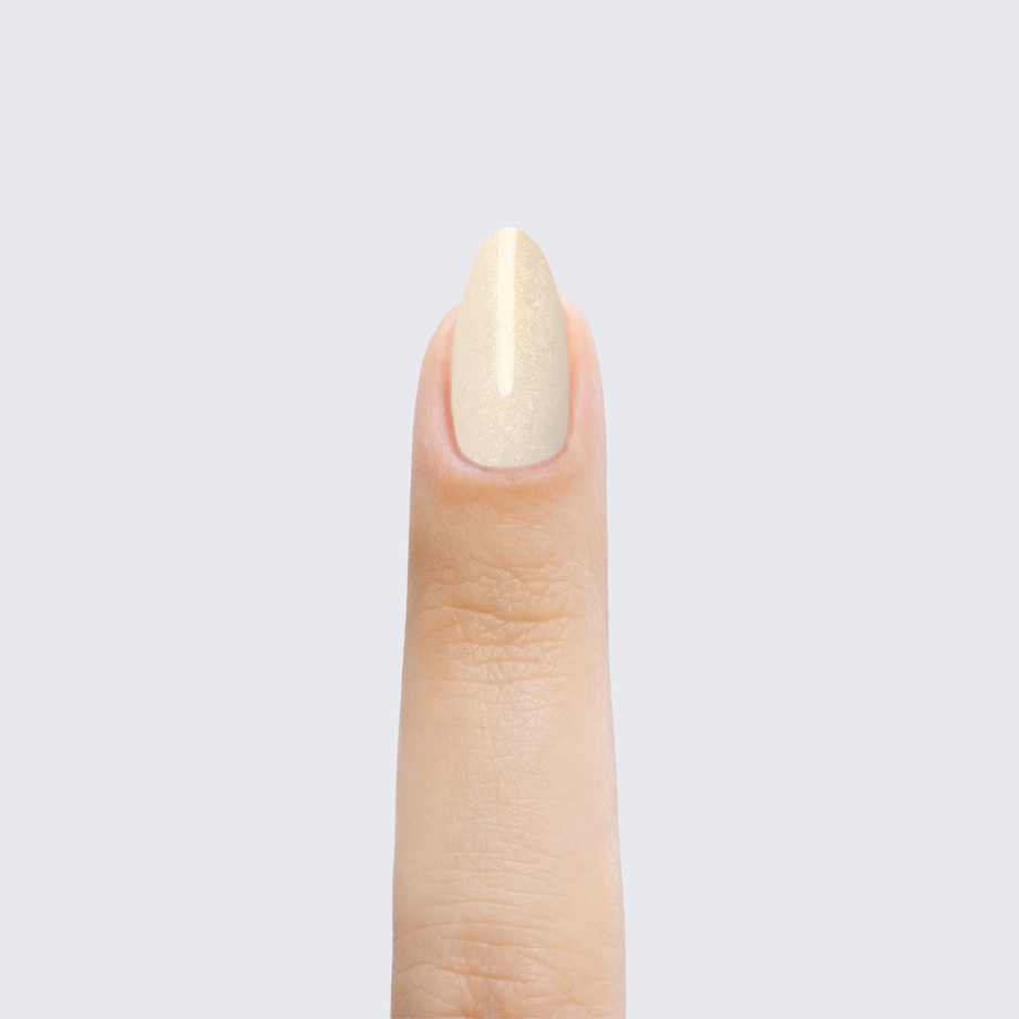 This lovely cream-toned polish is charmed with a soft golden shimmer.